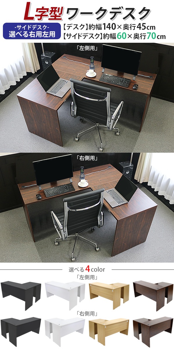 選べる4カラー&右用左用 ワークデスク L字型 約W140×D115×H73.5 幕板 ゲーミングデスク L字デスク L型 サイドデスク 連結 オフィスデスク エグゼクティブ パソコンデスク PCデスク 約W1400×D1150×H735 平机 コーナーデスク 会社 事務所 事務机 wdesk14045f2