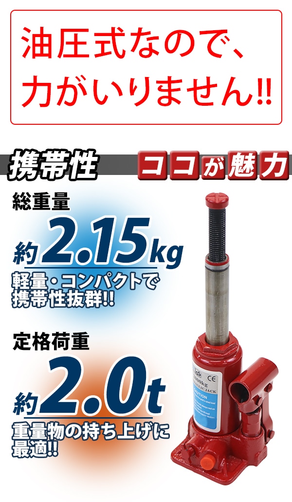 コンパクトで持ち運びに便利な油圧式ジャッキ!