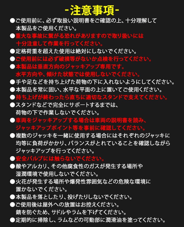 - 軽自動車のジャッキアップの為に購入しましたが、シリンダーから油漏れの兆候があり下がってくるのとダウンさせるのにどうすればいいのか判りかねる。またトップにゴムがついていないので凹んだり傷が付く心配もあり...