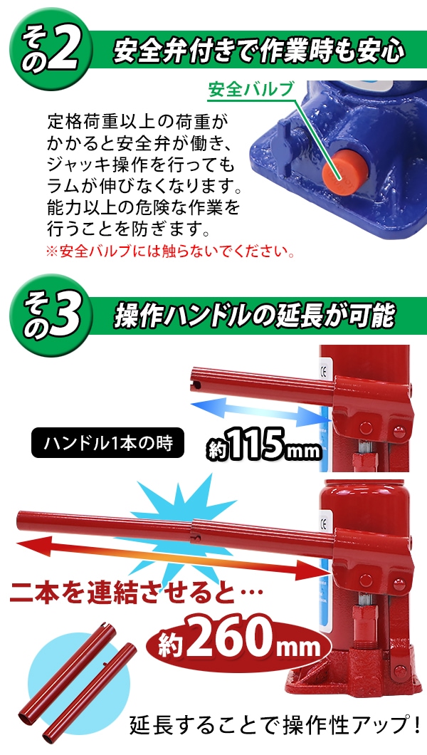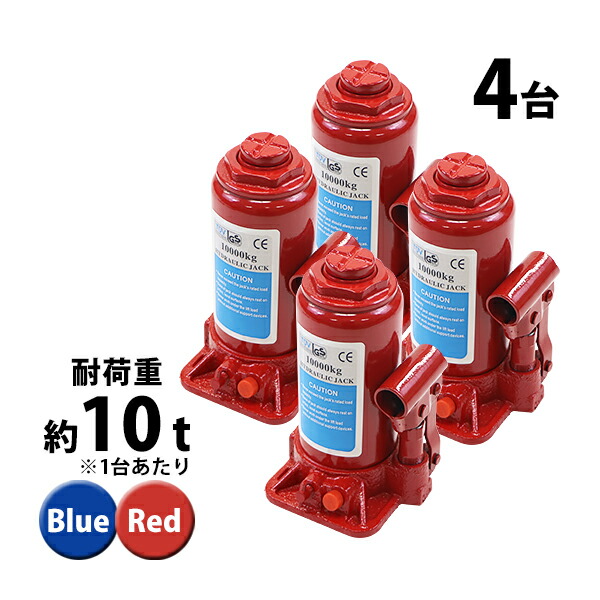 選べる2カラー 油圧式 ボトルジャッキ 定格荷重約10t 約10000kg 4台セット 4個 油圧ジャッキ だるまジャッキ ダルマジャッキ ジャッキ 手動 安全弁付き ジャッキアップ タイヤ交換 工具 小型 車載用 車 整備 修理 メンテナンス 建設 工場 作業 bjackt41010t4p