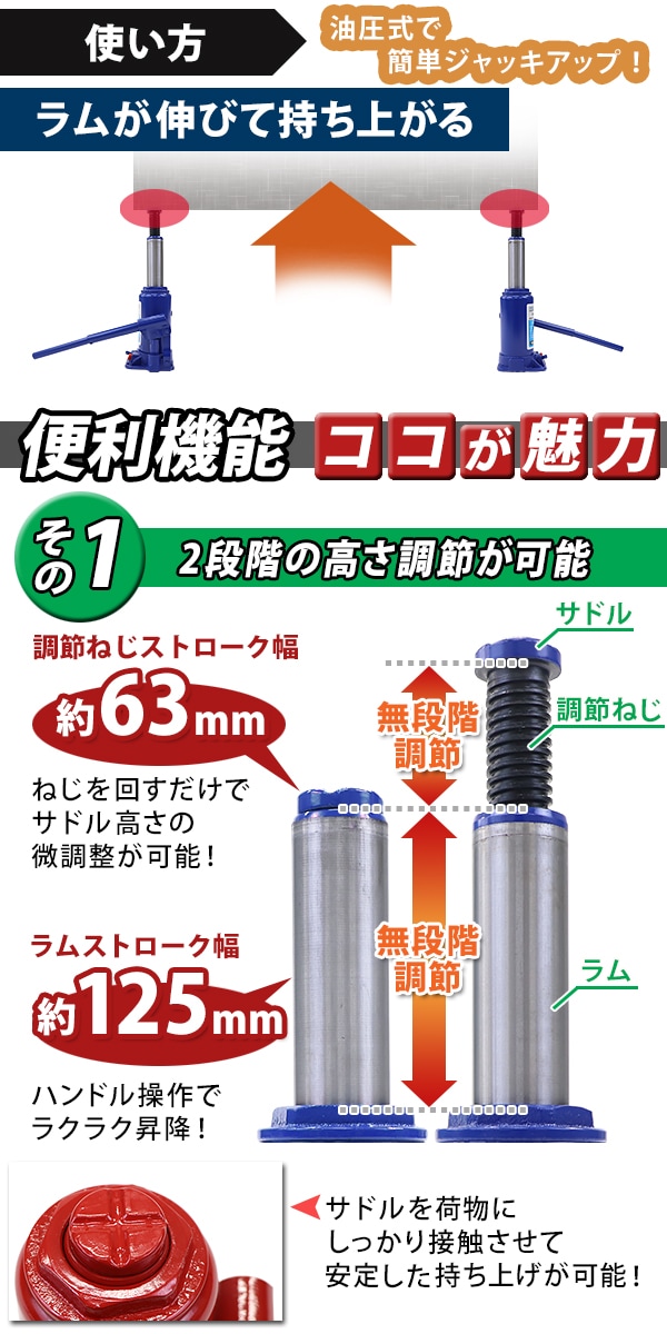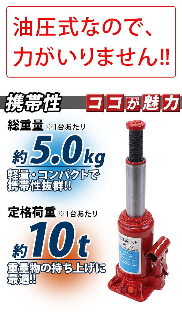 コンパクトで持ち運びに便利な油圧式ジャッキ!