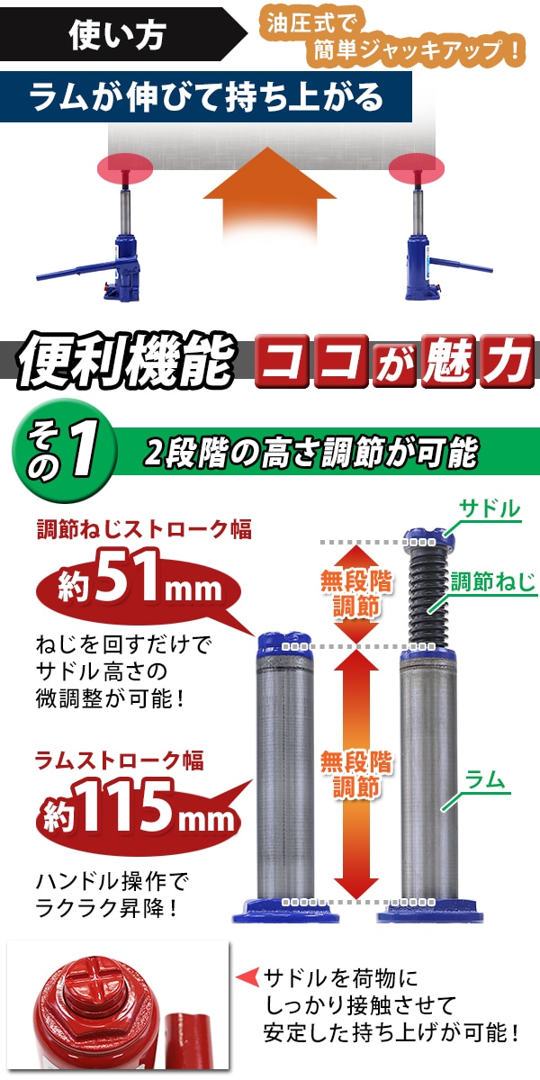 コンパクトで持ち運びに便利な油圧式ジャッキ!
