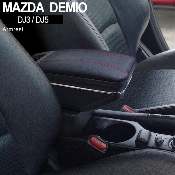 DEMIO DJ系 CX-3 DK系 多機能 センターコンソール 収納ケース 内装 ドリンクホルダー カスタム パーツ アクセサリー トレイ 黒 メッキ 赤糸ステッチ 収納付き 肘掛け 肘置