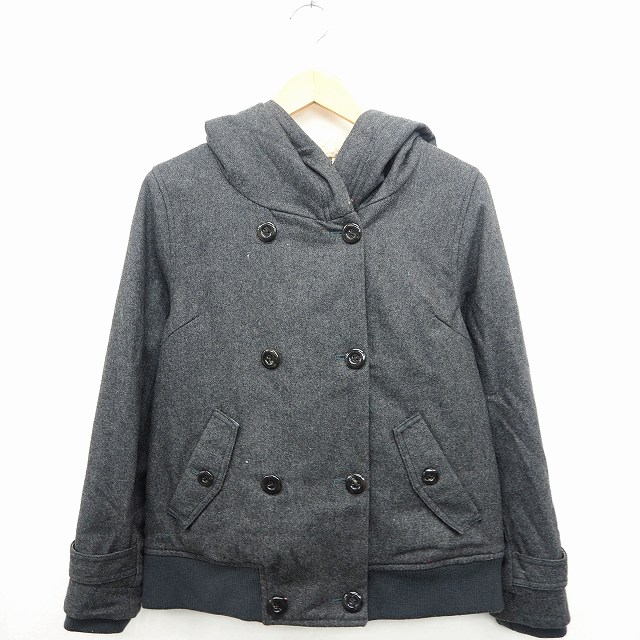 【中古】レイカズン Ray cassin コート アウター Pコート ピーコート 中綿 フード 裏起毛 リブ ショート丈 長袖
