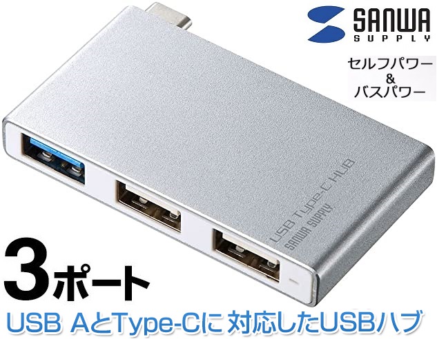 Type-C USBハブ サンワサプライ USBハブ バスパワー USB Type-Cハブ USB3.0 3ポート シルバーUSB-3TCH5S