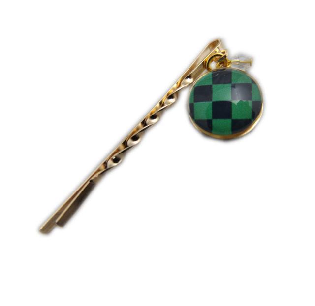 ヘアピン ガラス玉付 緑黒市松 きめつ 和柄 日本製 ヘアアクセサリー 女性用 レディース 子供用 キッズ