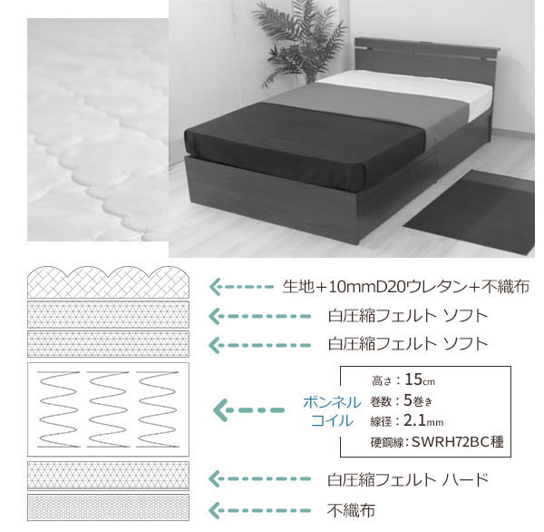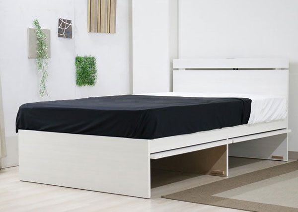 激安 フラップ収納仕様 シングルベッド マットレス付き ダークブラウン クラッシックホワイト