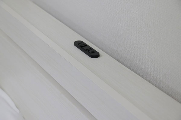 床下部分はフラップ扉仕様になり広い空間がありますので透明の衣装ケースを入れて収納部にできます。