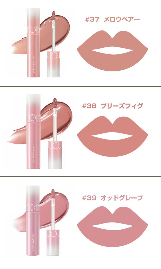 - ロムアンドのティント#19 アーモンドローズを購入。 苺飴のような甘い香りと、塗った時の伸びのある艶が好みでした。 イエベですが、ベースに#22のポメロスキン、中央に少しアーモンドローズを重ねても良い...