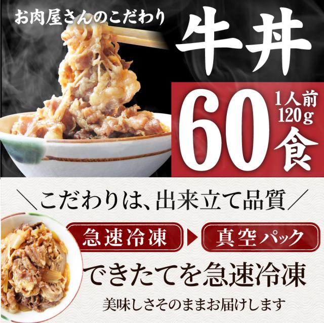 牛丼 牛丼の具 60個セット お肉屋さんのこだわり たっぷり牛肉の簡単牛丼 昼ごはん ストック 時短 働くママ 冷凍食品 お弁当 お試し 便利 夜食 手軽 お取り寄せ グルメ おつまみ 牛皿 冷凍食品 冷凍 おかず セット 冷食 お惣菜 湯煎 温めるだけ 仕送り 1食120g