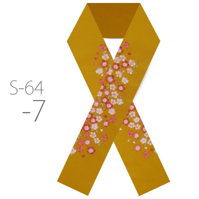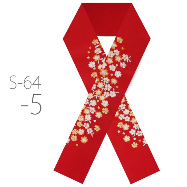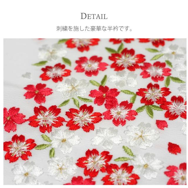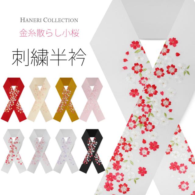 刺繍半衿 振袖 オシャレ着 洗える半衿 洗濯可 日本製 金糸 和柄 白 赤 橙 ピンク 黒 桜 小花 [S-64]