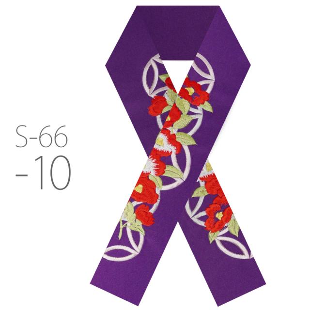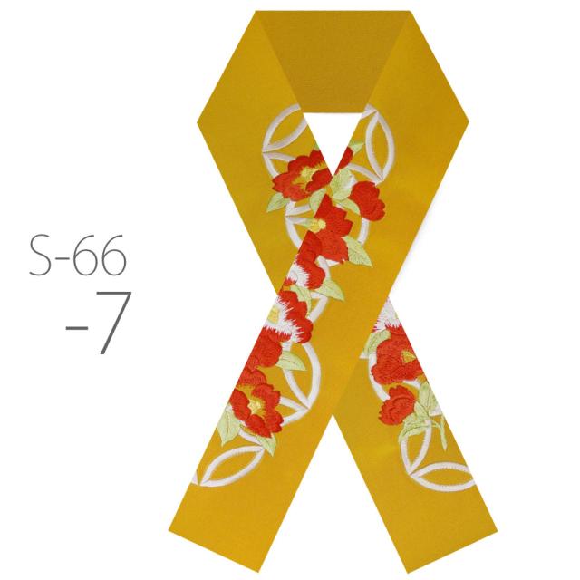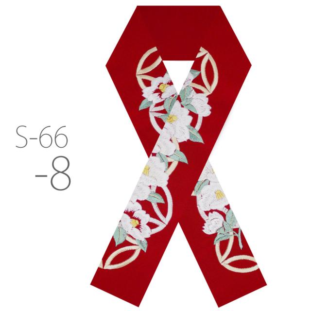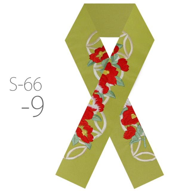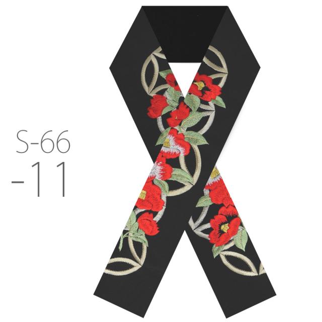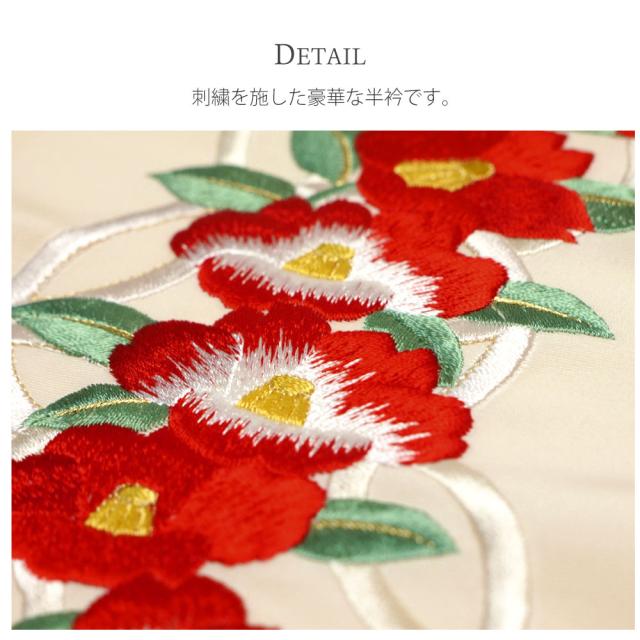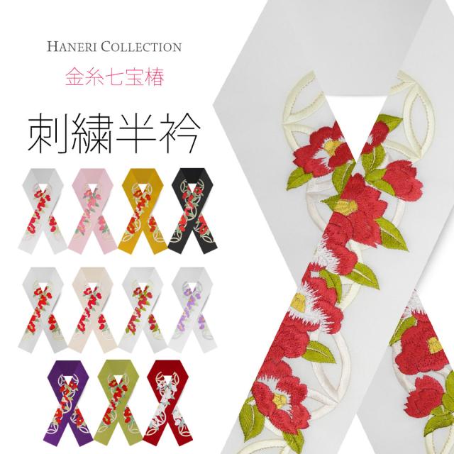 刺繍半衿 振袖 オシャレ着 洗える半衿 洗濯可 日本製 金糸 和柄 七宝柄 椿 ツバキ 赤 橙 クリーム 白 ピンク 緑 紫 黒 [S-66]