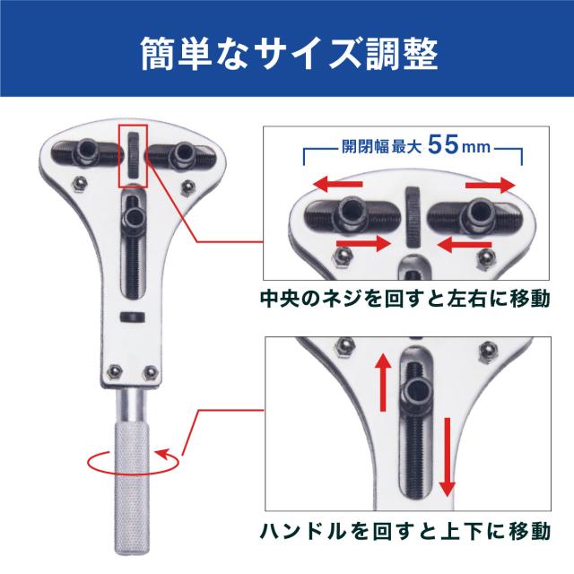 スクリューバックオープナー 腕時計55mm、大型腕時計にも対応