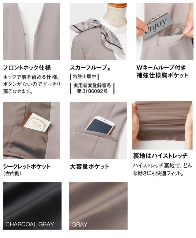 おもてなし制服 受付 ENJOY Noir エンジョイ ノワール ノーカラージャケット NAJ011 ソアロンピケ カーシーカシマ