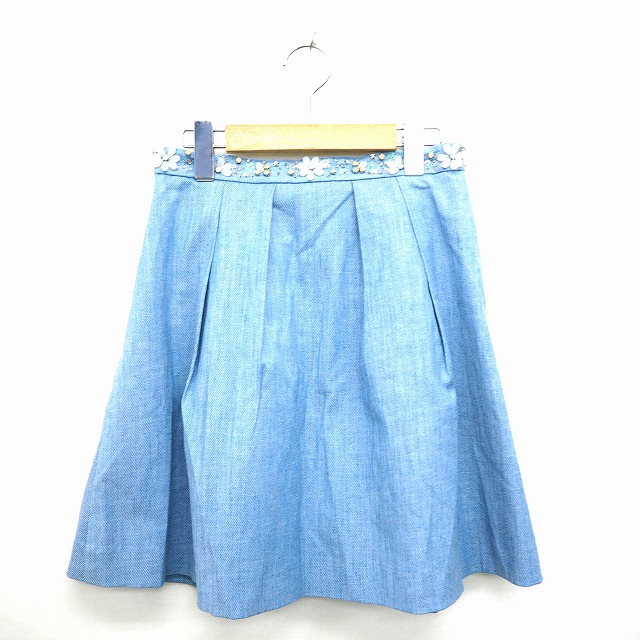 【中古】リランドチュール Rirandture スカート ボトムス フレア デニム ビジュー スパンコール ひざ丈 2 ブルー 青