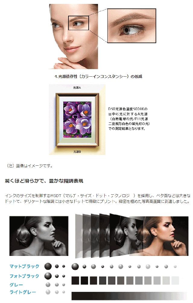 ブルー領域の階調性と黒濃度向上による別格の表現力をご体感ください。