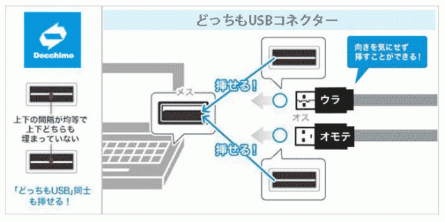 ■パソコンやUSBハブなどに接続するときも、向きを気にせず挿せる「どっちもUSBコネクター」搭載