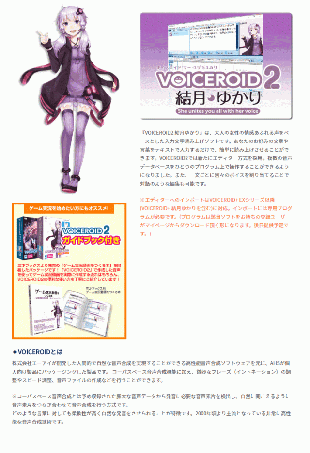 | VOICEROID2 結月ゆかり スペック情報 | |