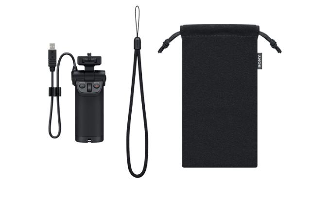 マルチ端子ケーブル搭載のリモコン機能付き「VCT-SGR1」。RX100シリーズ(*)と一体感のあるデザインと軽さで、日常使いから旅行まで幅広いシーンで気軽に持ち歩けます。