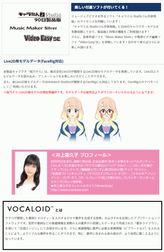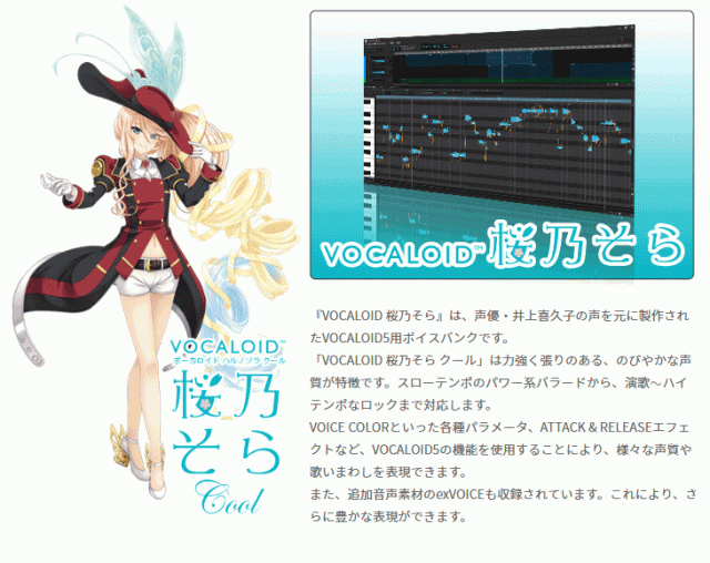 | VOCALOID 桜乃そら クール スペック情報 | |