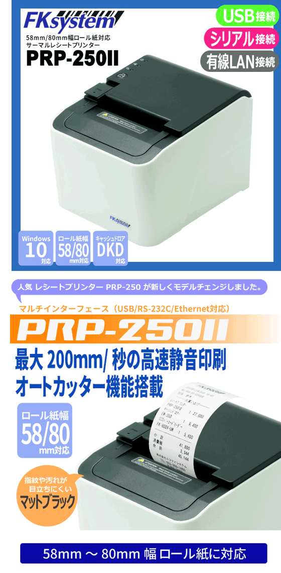 エフケイシステム 納期未定 サーマルレシートプリンター PRP-250II