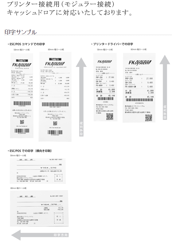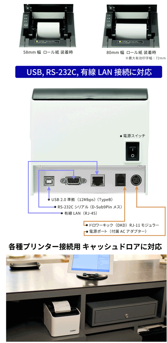 | 用紙幅 | 58mm/80mm(仕切り板にて切り替え可能) |