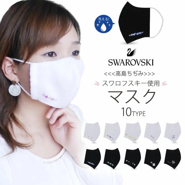 スワロフスキー マスク 10タイプ 白 黒 コットン100% 立体 洗える 布マスク 保湿 冷感 爽快 男女兼用 ウイルス対策 ワンポイント 蒸れない レディース