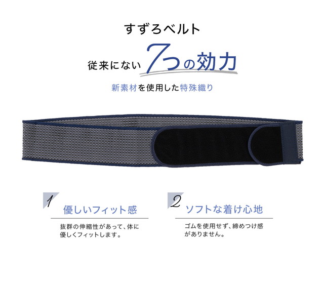 伸縮性あるポリウレタン素材が緩まず締め付けず、すべり止めが付いているので、下前が落ちてくる事もありません。