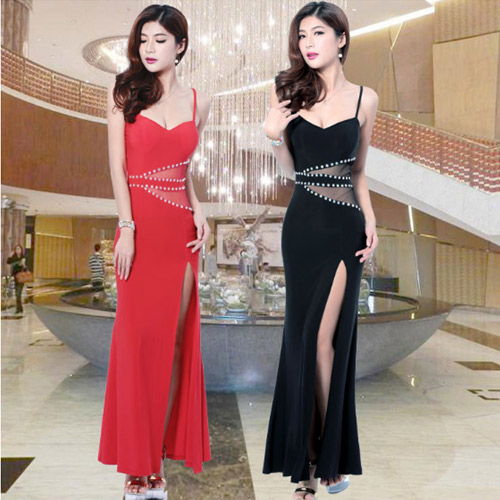 ★ 大胆スリット&バストラインストーン装飾が高級感を演出してくれるデザインドレスです!!