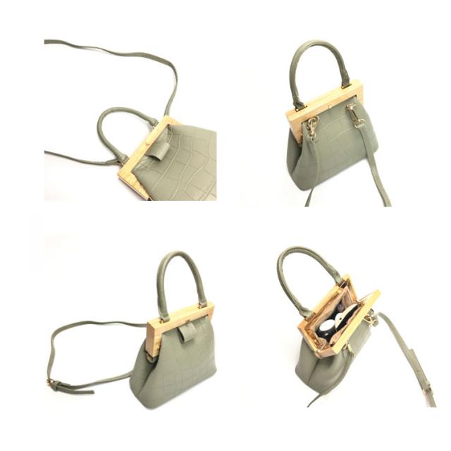 ショルダーバッグ がま口 木製がま口レディース 小さめ 木製 がまぐち ハンドバッグ クロッコダイル 斜め掛け 肩掛け ミニバッグ おしゃれ ナチュラル 送料無料