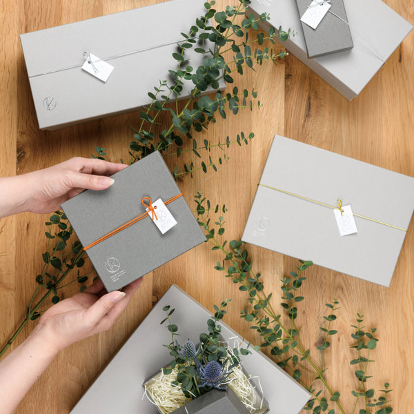 作る人の手から、贈る人の手、使う人の手へ。そんな気持ちが込められたギフトボックスに入っています。ボックスとタグには、手から手へ想いが伝わるようにと願いを込めたオリジナルのロゴがデザインされています。