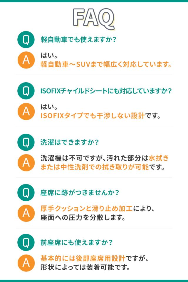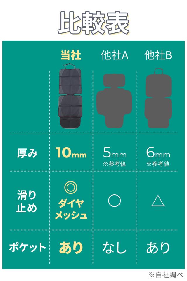 厚みのあるシートなので、チャイルドシートのぐらつきを防止、大切なお子様をしっかり保護します。
