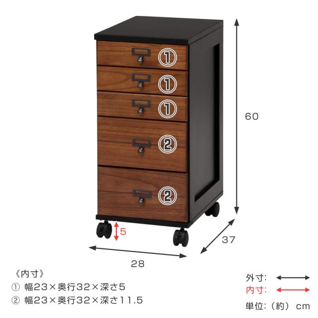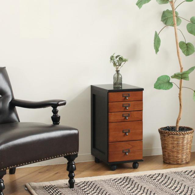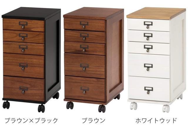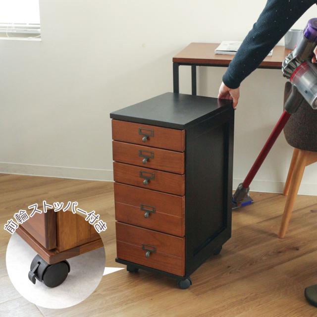 限られた空間にも置きやすい キャスター付きチェスト5段