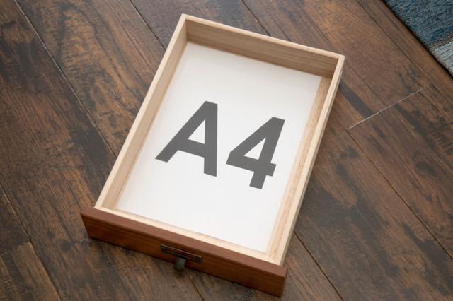 引出しはA4サイズのクリアファイルが収まるサイズです。書類や郵便物、プリント類を段ごとに分けて収納でき、必要なものをすぐに取り出せます。