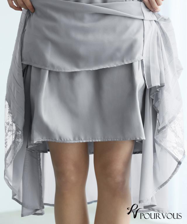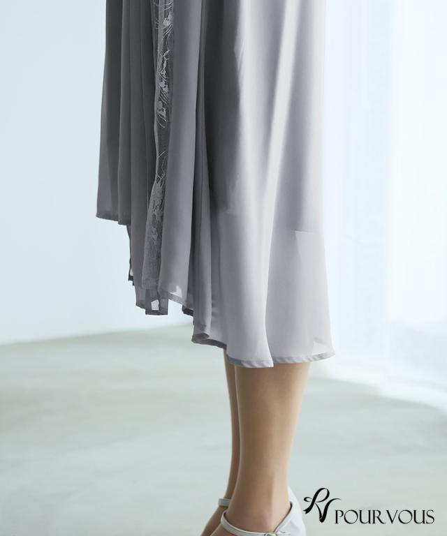★プリーツとレースの異素材切り替えが可愛いフレアスカート♪