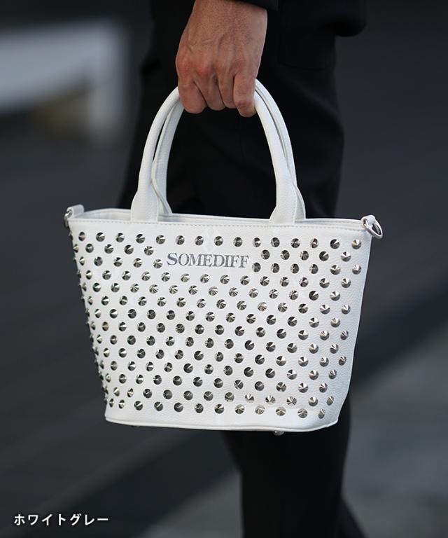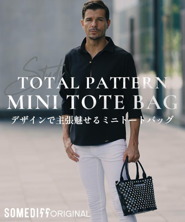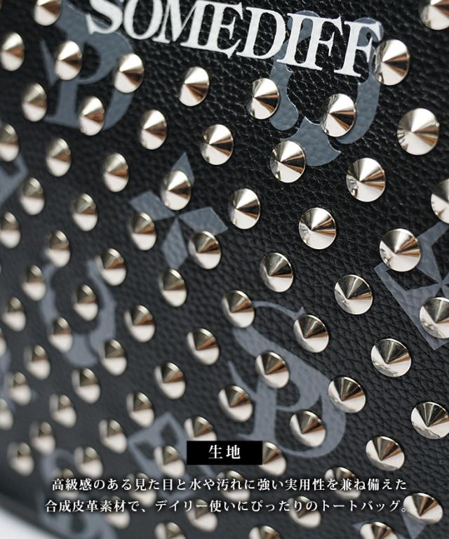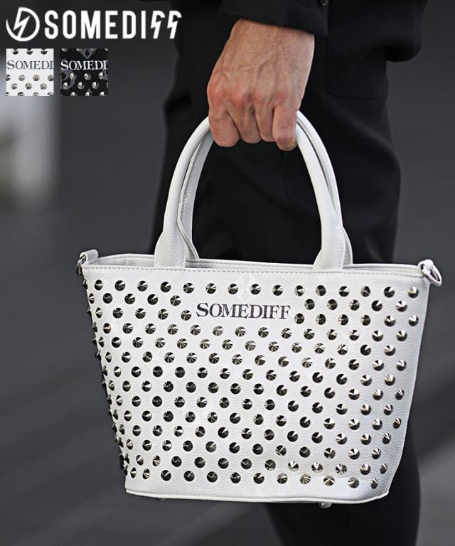 ミニトートバッグ メンズ ブランド おしゃれ トートバッグ メンズ 小さめ ミニバッグ メンズ スタッズ 総柄 バッグ 鞄 柄 somediff ミニトート 男女兼用 小さめ ギフト ブラック ホワイト 黒 白 サムディフ お兄系 オラオラ系 ちょいワル SOMEDIFF サムディフ 夏新作 新作