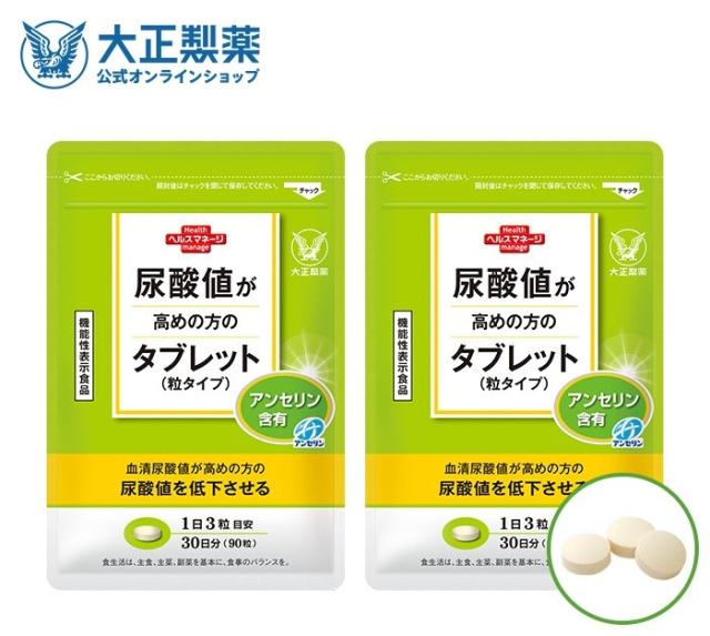 【レビューでポイント5%】【公式】大正製薬 尿酸値が高めの方のタブレット (粒タイプ) 90粒 2袋セット 尿酸値 尿酸 プリン体 予防 食べ物 食事 サプリ サプリメント