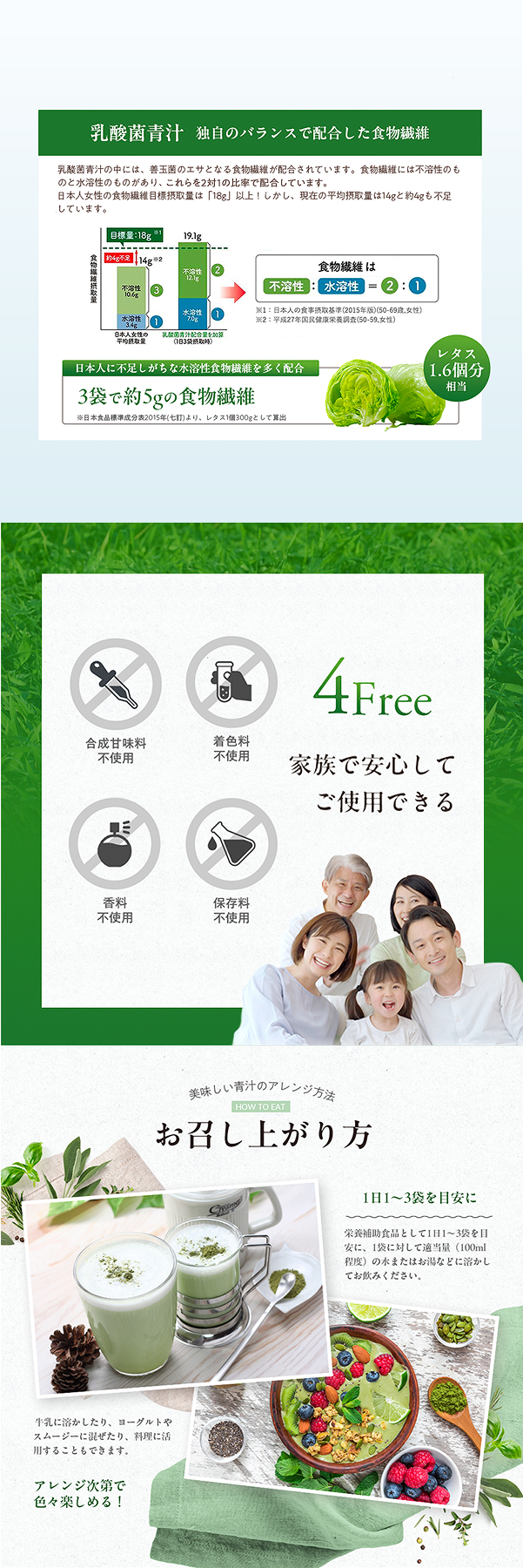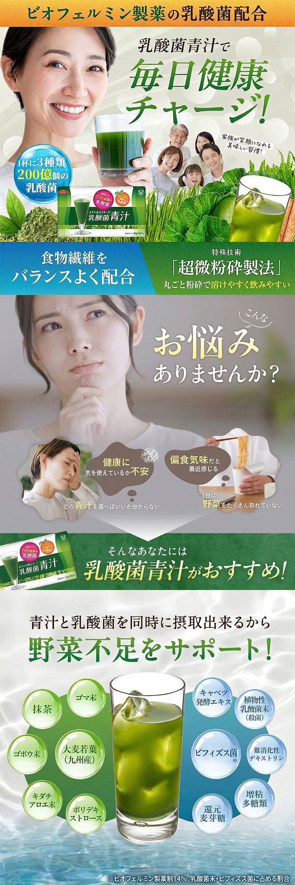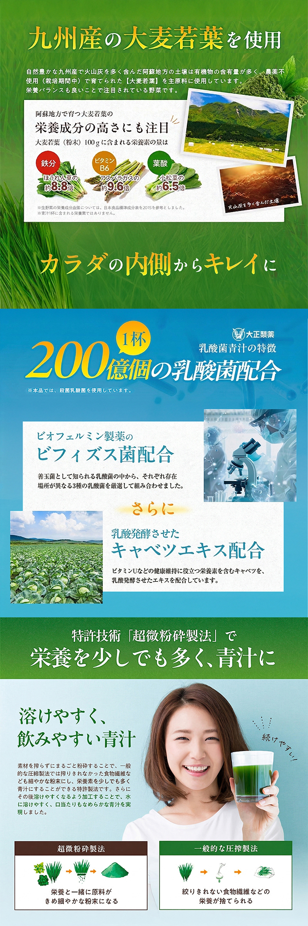 毎日の健康習慣に、美味しくスッキリとした乳酸菌青汁をお役立てください。
