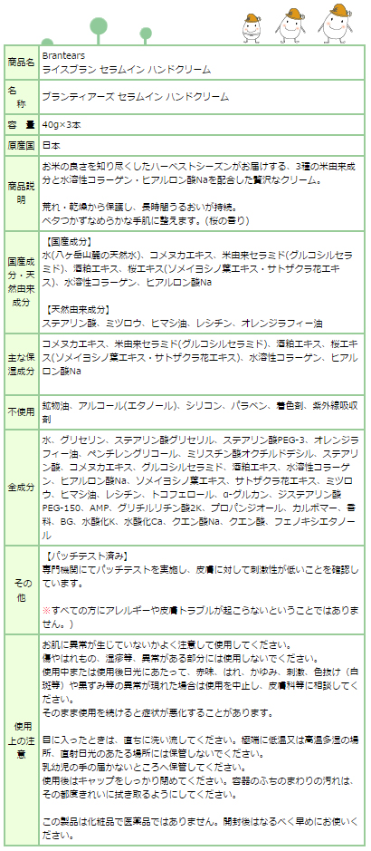 【40g×3本セット(ケース・紙袋無し)】Brantears ブランティアーズ ライスブラン セラムイン ハンドクリーム 桜の香り [メール便配送無料]