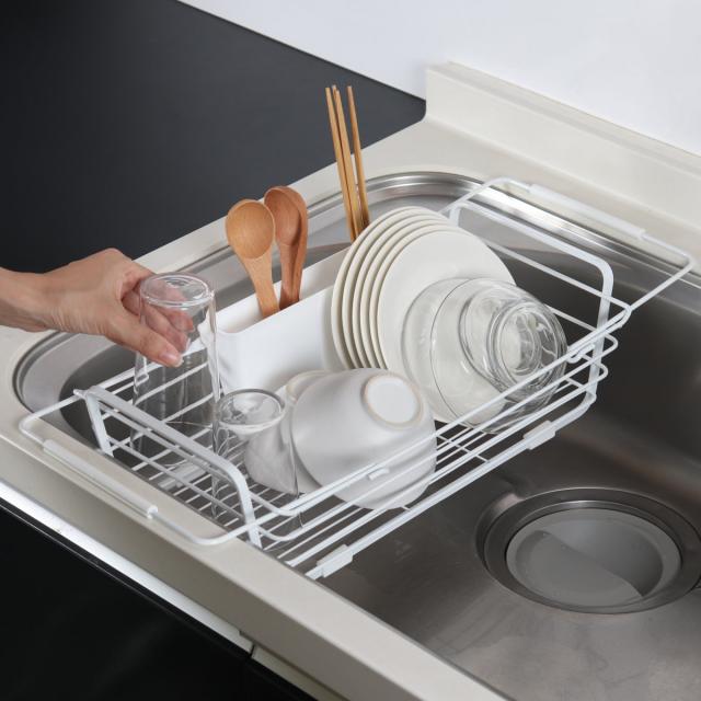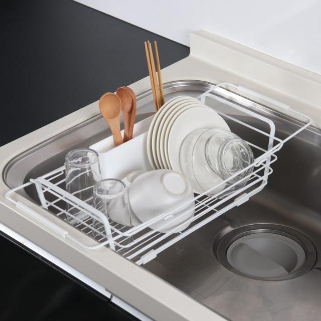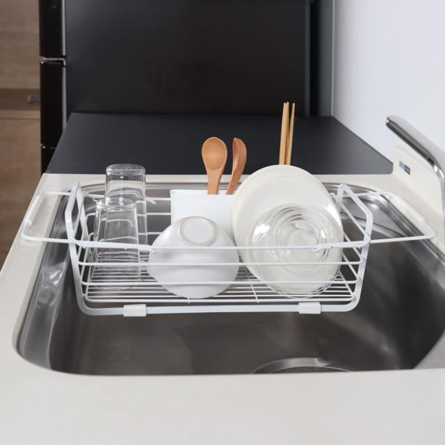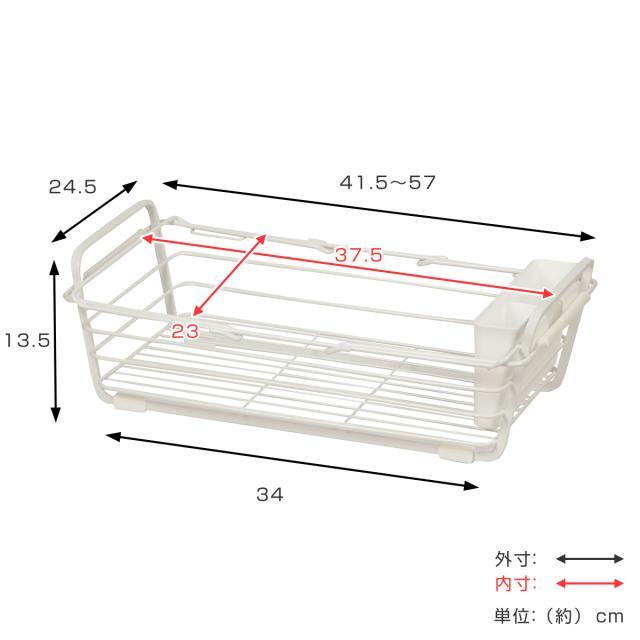 水切りカゴ スライド式 シンク 水切りバスケット シンプルストレージ W ( 水切りかご 水切りラック ディッシュラック 水切りトレー 防サビ加工 水切り 洗い物 自動排水 シンク横 乾燥 ホワイト 白 キッチン用品 )