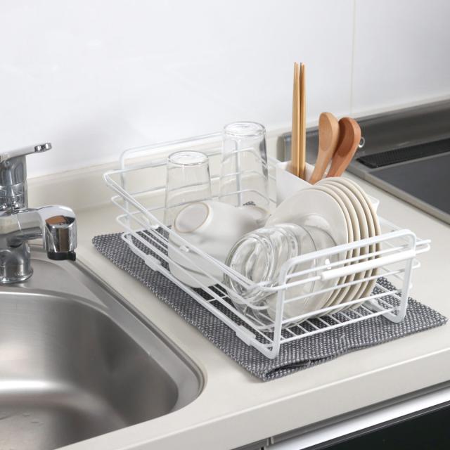 《 LH1947 カトラリーポケット付き 収納 キッチングッズ キッチン雑貨 キッチン小物 キッチンアイテム 台所用品 キッチン整理用品 シンプル 無地 縦置き 横置き 水周り用品 水回り用品 水まわり用品 便利 役立つ おすすめ オススメ 皿洗い 食器洗い スタイリッシュ バスケット 皿立て 新生活 新生活準備 排水栓付き 》