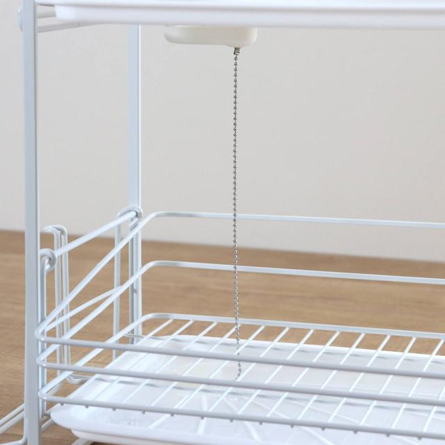 上段に溜まった水は排水チェーンを伝って下段のトレーへ流れ、しっかり排水します。