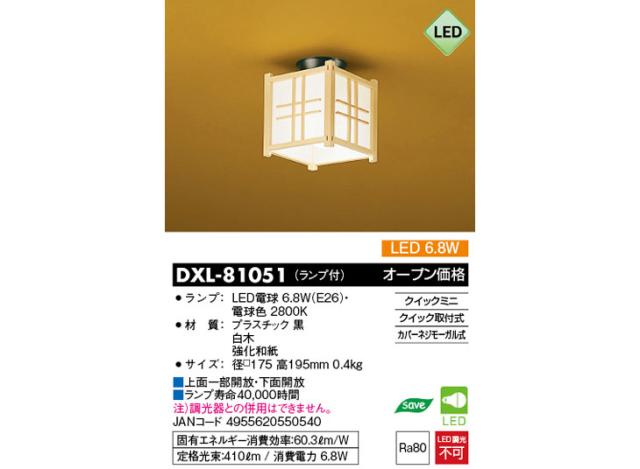 DAIKO/大光電機 DXL-81051 LED和風小型シーリングライト