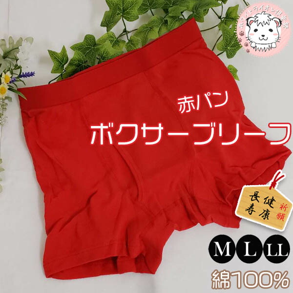 ボクサーブリーフ 赤の力 赤いパンツ 綿100% M/L/LL | 健康長寿 縁起物 冷えとり オールシーズン 無地 メンズ ボクサーパンツ インナー 下着