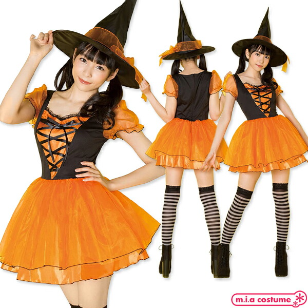 黒色 ブラック オレンジ 橙色 無地 ワンピース スカート 魔女 ウィッチ 魔法使い レディース 婦人 女性サイズ コスプレ コスチューム 仮装 衣装 Cosplay Costume ハロウィン Halloween イベント 文化祭 新年会 忘年会 撮影会 余興 催事 セクシー Sexy 清楚系 おとなしめ 可愛い かわいい キュート Cute フェミニン プチプラ プレゼント用 ギフト 人気 高品質 誕生日 彼女 彼氏 送料無料 ミアコスチューム ポイント消化