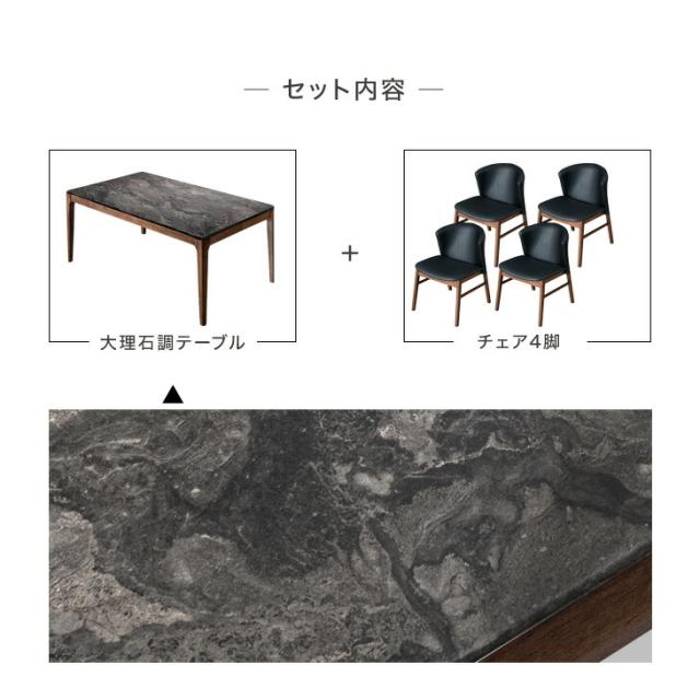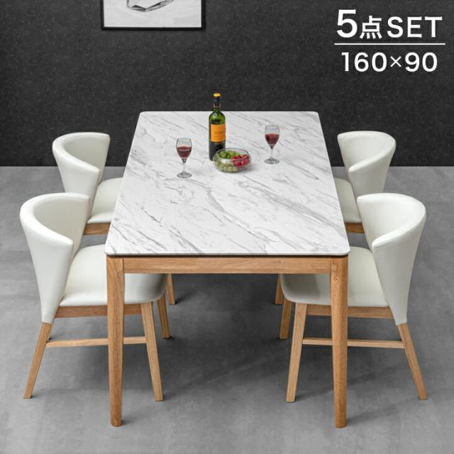 大理石調 ダイニングセット 4人用 5点 セット テーブル + チェア 4脚 5点 セット 160cm 160 × 90 おしゃれ 四人掛け 食卓テーブル 木製 天然木 フレーム 長方形 [超大型商品] 【商品番号:49100025】