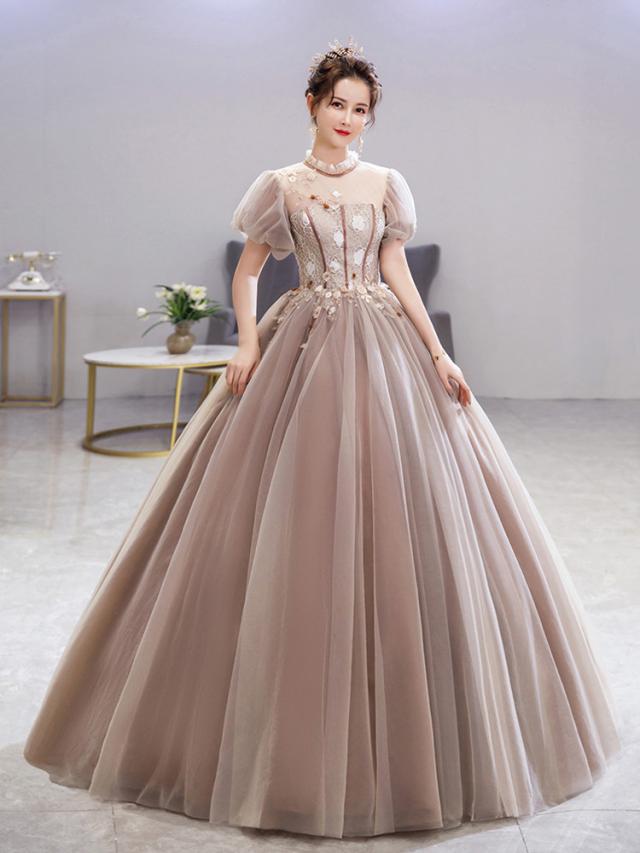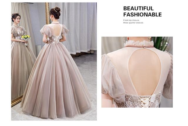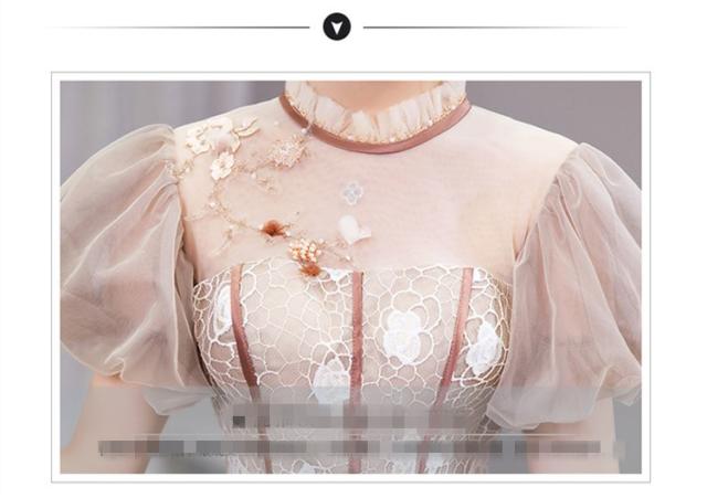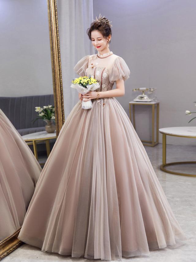 カラードレス パーティドレス ロングドレス ワンピ チュールスカート パフスリーブ パニエ付 結婚式 発表会 撮影 オーダーサイズ可 D202