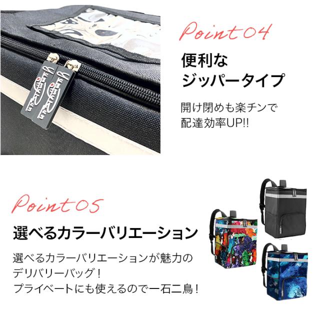 軽くて背負いやすいので、自転車,ちゃり,チャリ,バイク,原付,小型2輪など様々な配送方法で使用可能! 【取り出し口にはジッパーを採用】