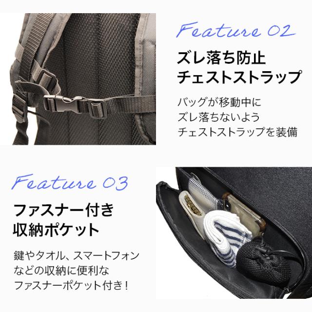 マジックテープだとすぐに使えなくなってしまうという声を元に機能性も考え、チャックを上部に採用しております。