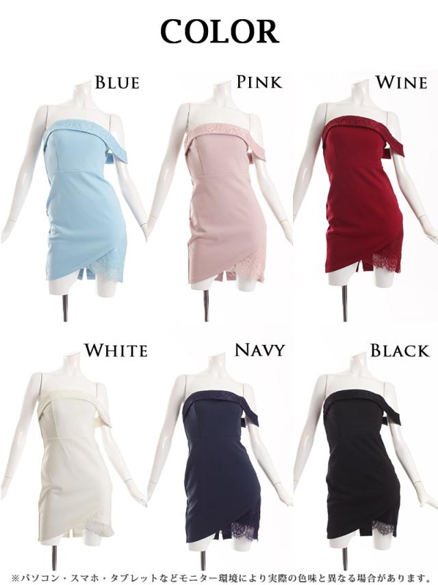 ☆アシンメトリーデザインがこなれ感を演出するワンショルダーキャバドレスは同色のレースを使用し大人っぽい印象を与えるワンカラーシアーミニドレス♪